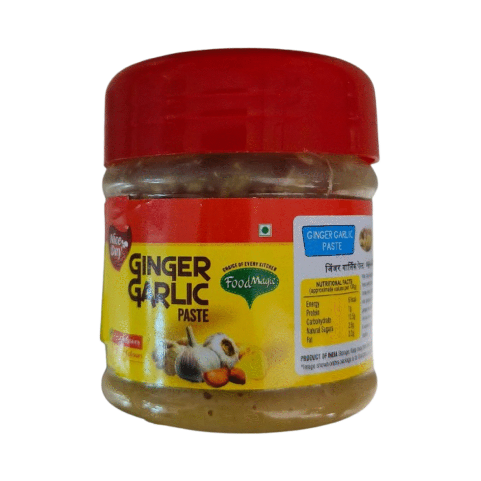 Ginger-Garlic Paste is a flavorful blend of fresh ginger and garlic, widely used in Indian cooking. It adds rich aroma and depth to curries, marinades, and stir-fries. Known for its digestive, anti-inflammatory, and immunity-boosting benefits, it’s a time-saving essential in the kitchen.